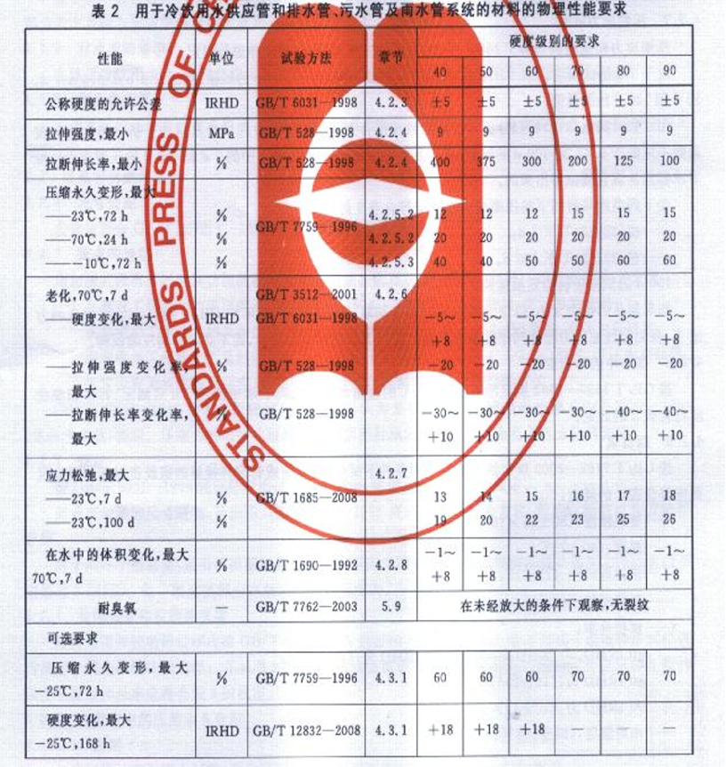 投標(biāo)人的制造廠家作為GB/T21873-2008《橡膠密封件 給、排水管及污水管道用接口橡膠密封圈 材料規(guī)范》標(biāo)準(zhǔn)的第一起草單位,所生產(chǎn)的橡膠密封制品(包含止脫膠圈、輸水膠圈、法蘭墊等)物理性能指標(biāo)完全滿(mǎn)足并優(yōu)于GB/T21873-2008《橡膠密封件 給、排水管及污水管道用接口橡膠密封圈 材料規(guī)范》標(biāo)準(zhǔn)的要求。